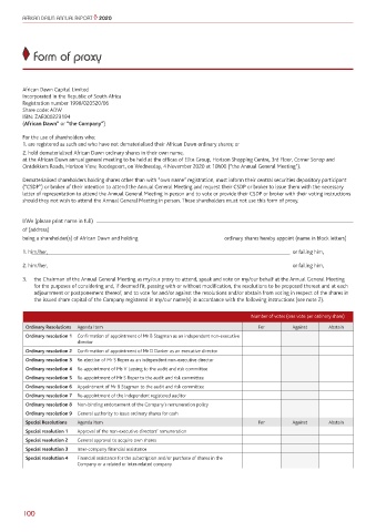 being a shareholder(s) of African Dawn and holding ordinary shares hereby appoint (name in block letters)