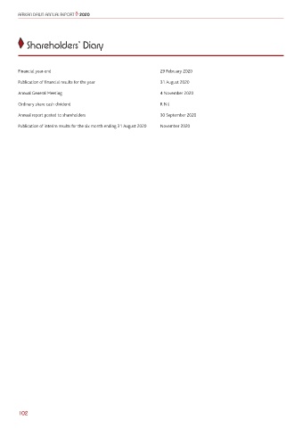 Publication of interim results for the six month ending 31 August 2020 November 2020
