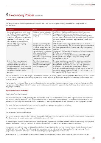 Operating losses incurred by the group Additional funding and equity Post February 2020 year end, Afdawn concluded a long term