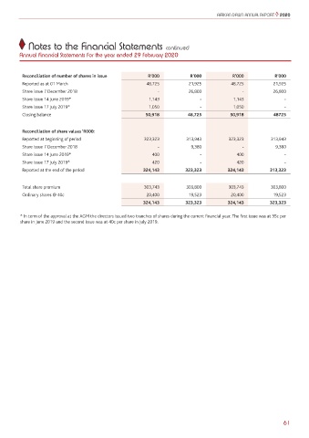 Reconciliation of number of shares in issue R’000 R’000 R’000 R’000