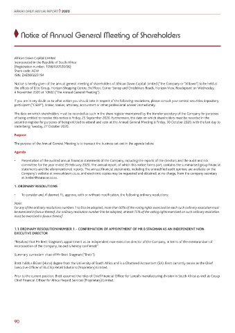 Notice is hereby given of the annual general meeting of shareholders of African Dawn Capital Limited (“the Company or “Afdawn”) to be held at