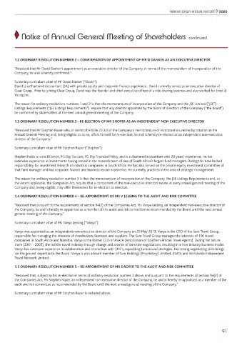 The reason for ordinary resolutions numbers 1 and 2 is that the memorandum of incorporation of the Company and the JSE Limited (“JSE”)