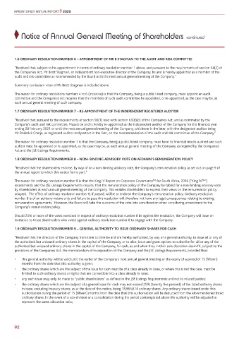 adopted. The effect of ordinary resolution number 8, if passed, will be to endorse the Company’s remuneration policy. Ordinary resolution